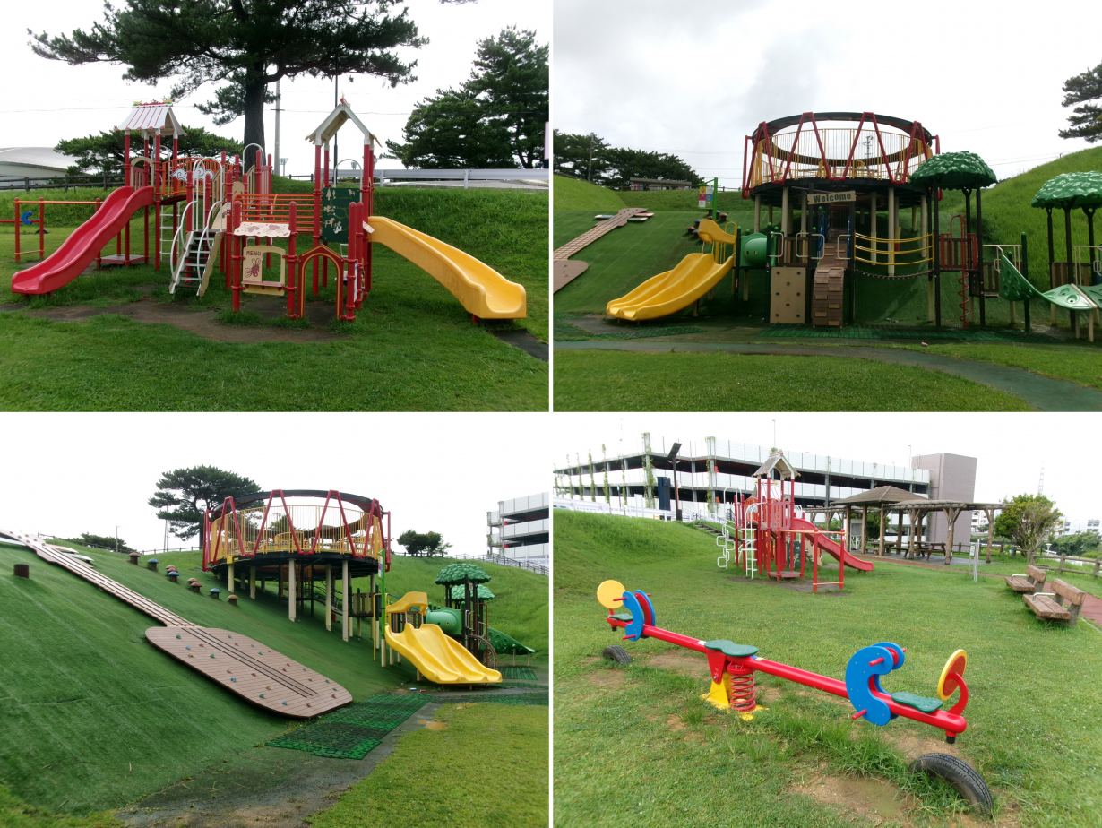 コザ運動公園内には、小さいお子さんが気軽に遊べる遊具が充実しています。