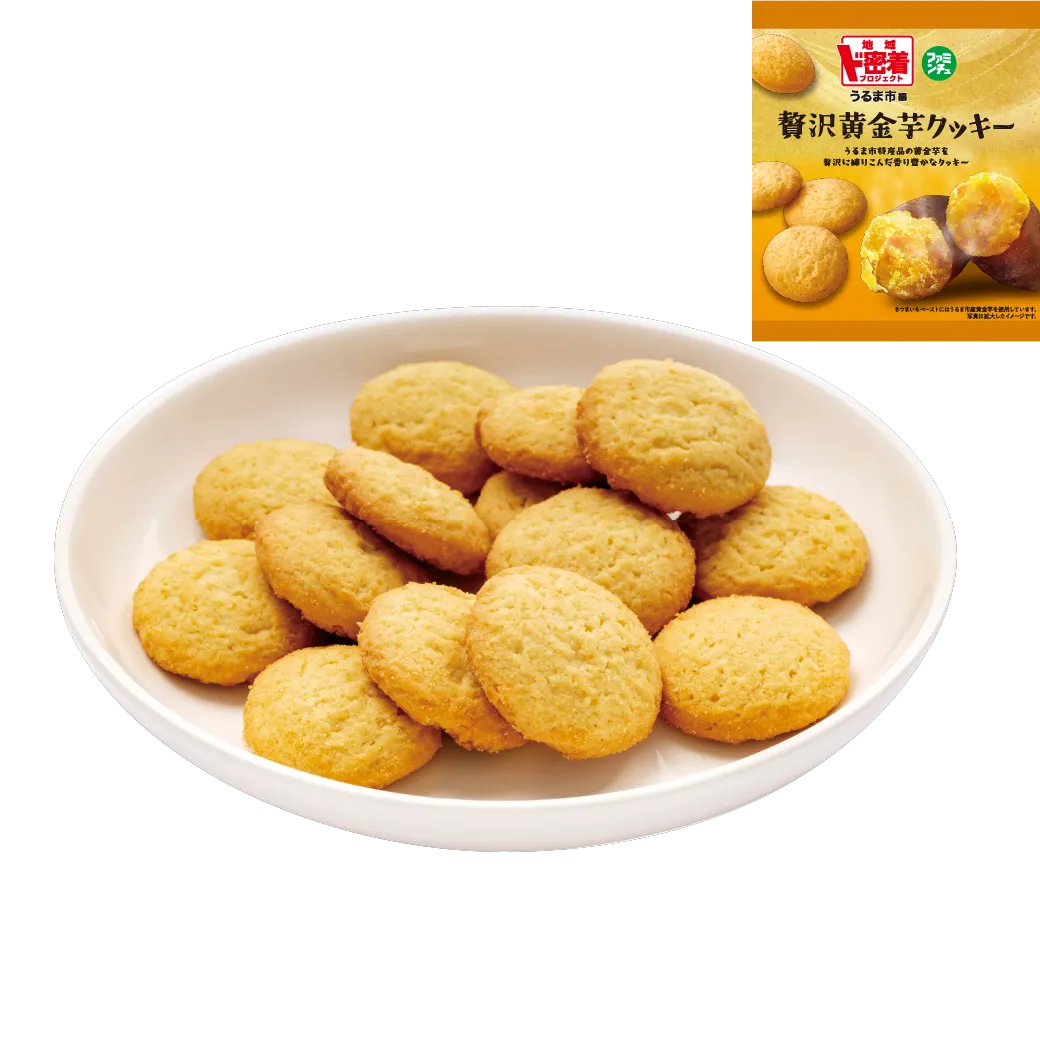 沖縄県うるま市の拠点産地認定品目の一つ、「黄金芋」を贅沢に生地に練りこんだ香り豊かなバタークッキー。