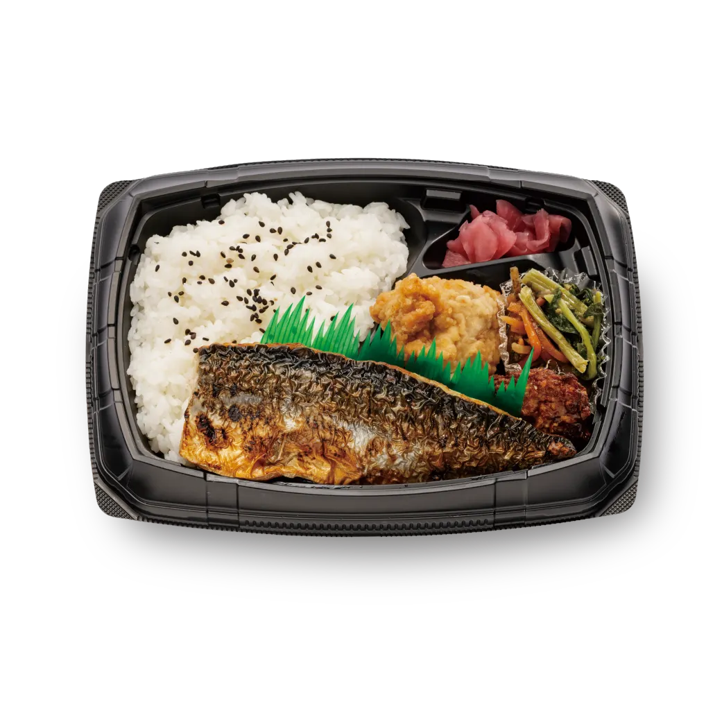 うるま市宮城にある世界初の特殊製法「常温瞬間空中結晶製塩法」で精製したぬちまーすを弁当のメイン具材に使用。ぬちまーすで味付けした鯖を炙り焼き、ぬちまーすで味付けした鶏をから揚げに。他に、鶏つくね、チキナー、きんぴらをトッピングした和風弁当。