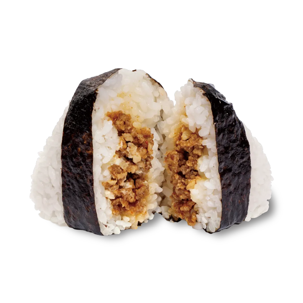 古謝ぐゎー商店製造「万能タレ中辛」を使用し、豚肉そぼろを炒め、うるままんまセレクション認定「沖縄島とん〈八味〉」をマヨネーズと組み合わせた八味マヨネーズをトッピングした「大きなおむすび」。
