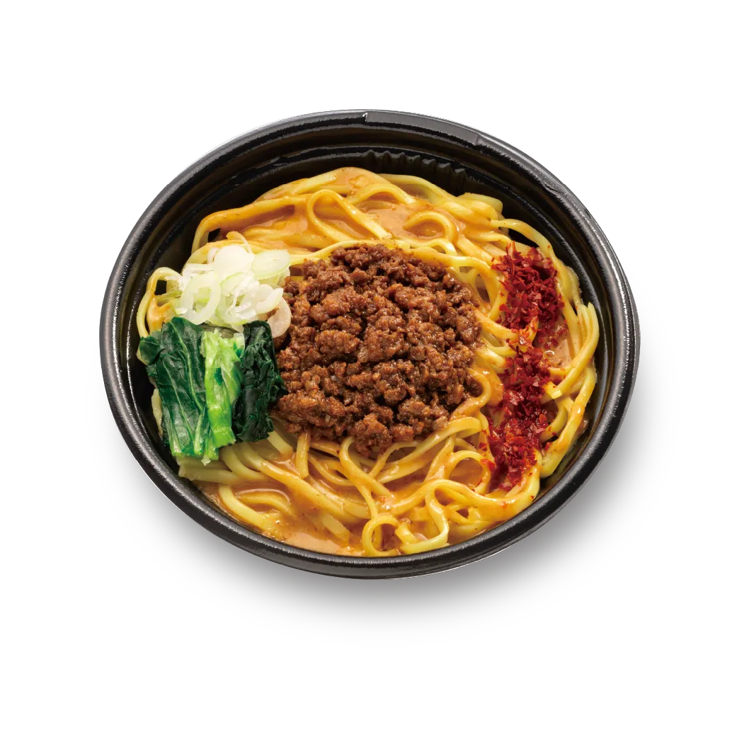 麺福なかむらで人気の限定商品である「担担麺」を店主様より監修頂いた逸品。鶏白湯スープをベースにねりゴマとすりゴマを合わせた濃厚なスープ。具材の肉そぼろ、青梗菜、白ネギ、赤唐チップをトッピング。レンジアップした後すぐにかける山椒が決め手の担担麺。
