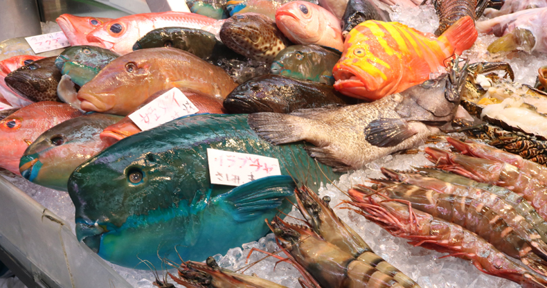 前々から『沖縄の魚はカラフル』ということは知ってはいましたが、市場でこうカラフルな魚が並んでいるのを見ると、圧巻ですね。