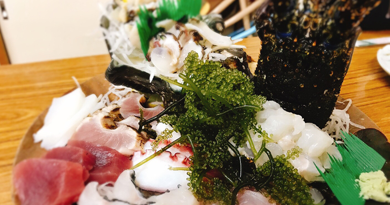 これすごくないですか?伊勢海老立ってるわ、海ぶどう溢れてるわ。画像をもう少し引きで取ればよかったという後悔。