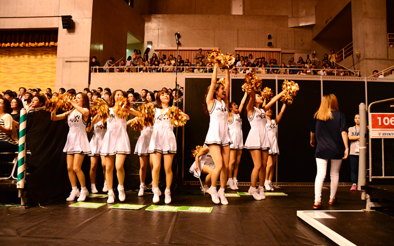 キングスの試合を盛り上げるチアリーダーと行き交うスタッフたち