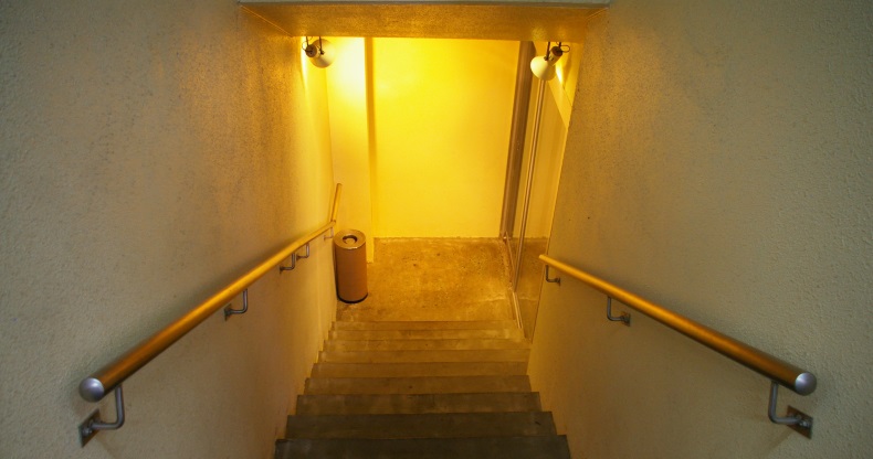 しかし階段を下りていくにつれ、やはりふぐ専門店らしい雰囲気が漂い始めます。貫録を表すような、入口に据えられた木製の看板。