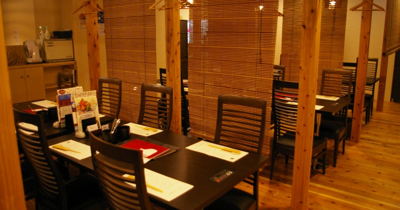 店内は広々。それぞれの席が壁やすだれで仕切られ、半個室に。プライベート感たっぷりなので、ゆっくりふぐの味わいを楽しめそうです。