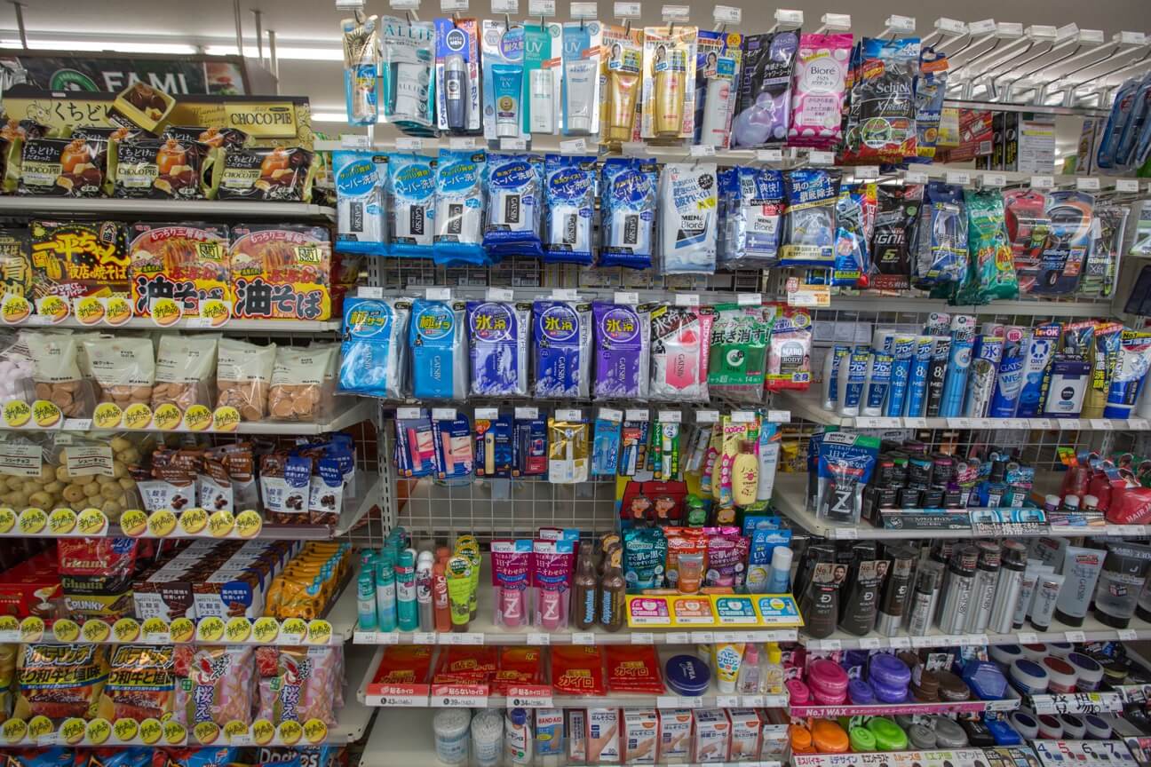 沖縄で釣りをする時には、とにかく日射しとの勝負。日焼け止めやデオドラント商品も充実しています。