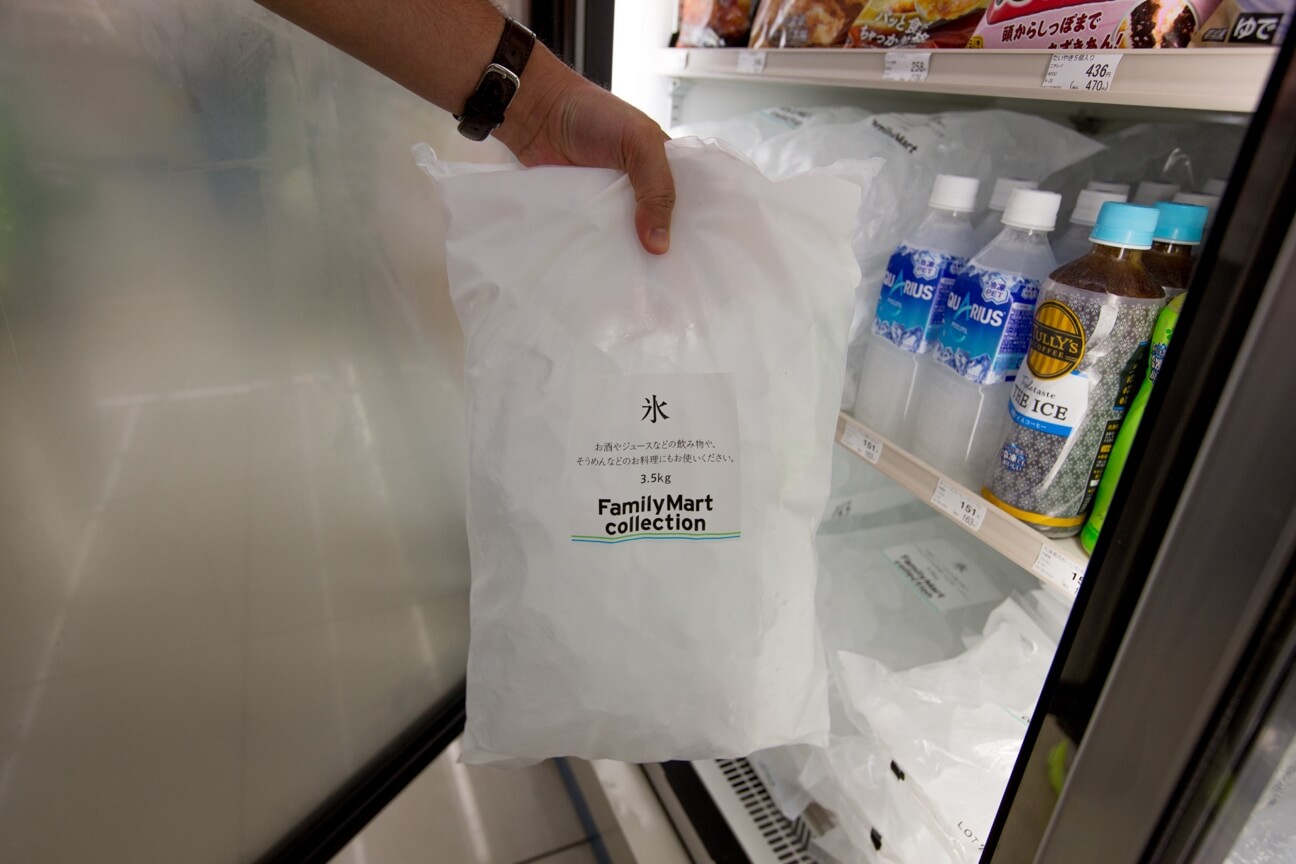 氷は、釣った魚を入れるクーラーボックスを冷やしておくための必需品です。 火照った身体を冷やす時にも便利です。これもファミマで調達。