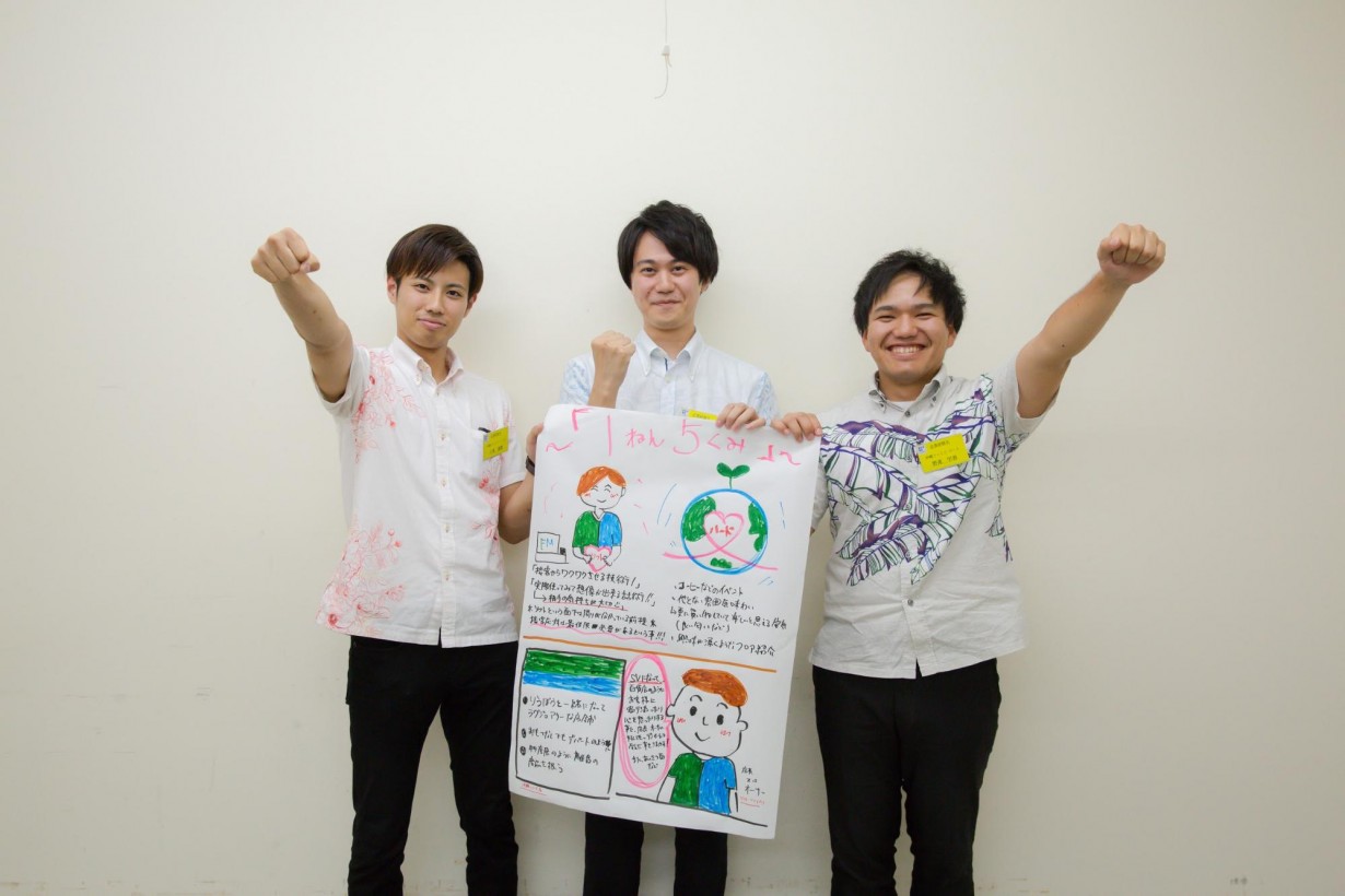 そしてもうひとつのグループは、藤野さん(発表役)、瑞慶覧さん(書記)佐渡山さん(タイムキーパーと進行役)の3人。