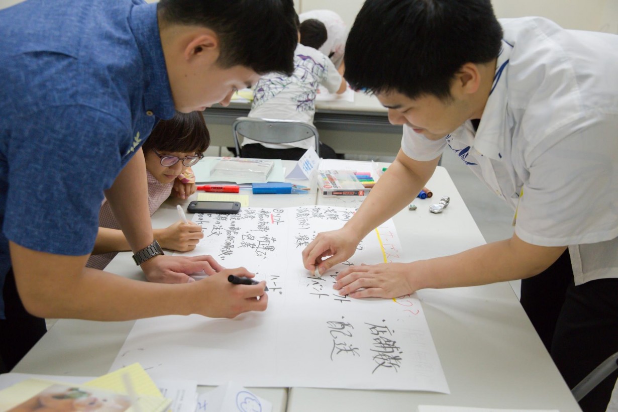 こちらのグループは、タイムキーパーと進行役は安村さん、書記は上地さん、発表役には野甫さんという役割分担。
