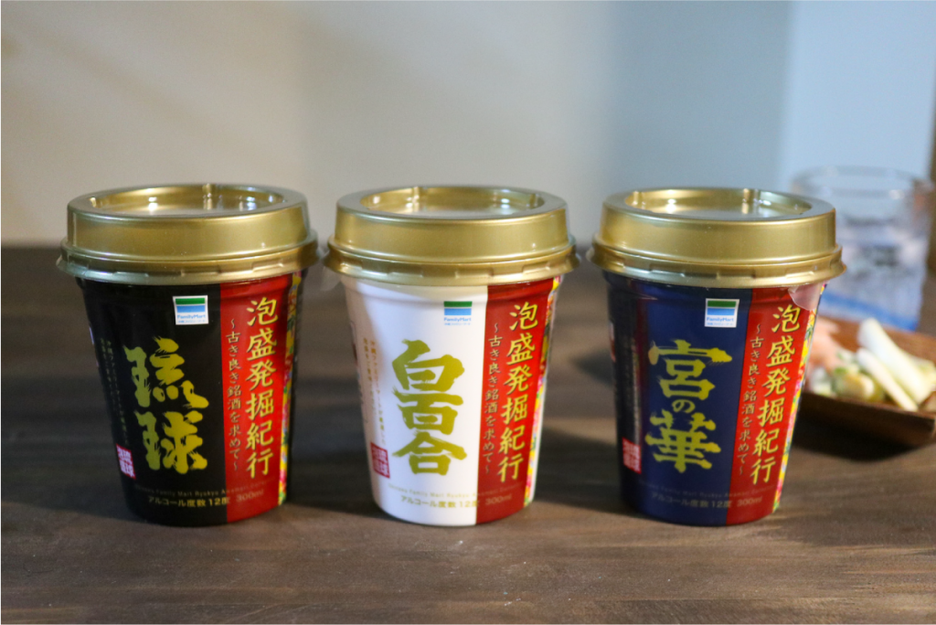 今回のおすすめは、泡盛発掘紀行300MLカップ3種類。