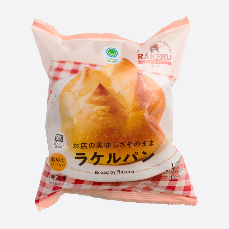 ファミマルKITCHEN冷凍スイーツ・ブレッドシリーズ。オムライス専門店「ラケル」の人気メニュー「ラケルパン」を手軽な1個入りにしました。素朴でありながら豊かな風味とふわふわでほんのり甘い味わいが特徴です。※数量限定です。
