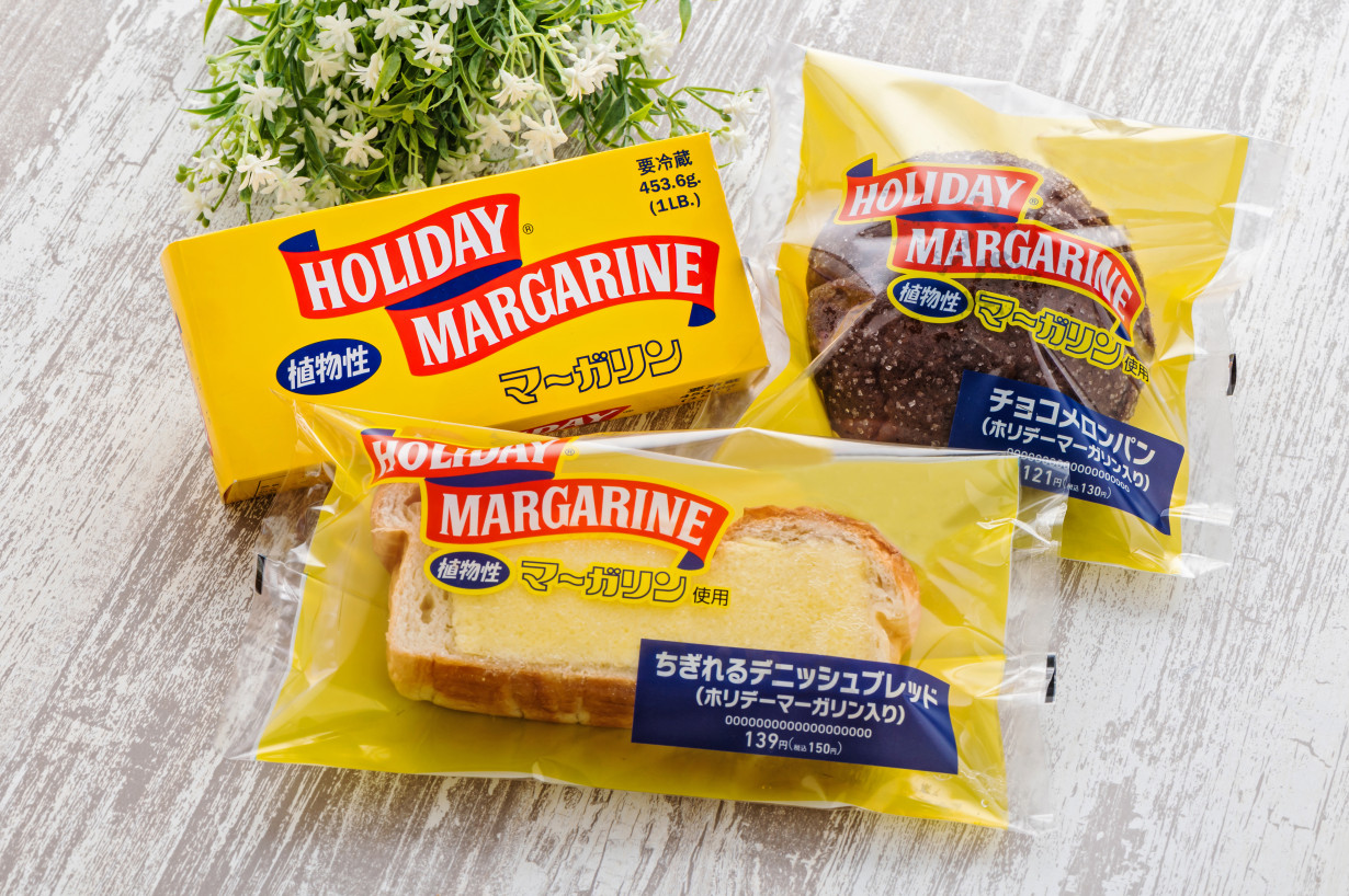 今回のおすすめは、長年県民に愛されているホリデーマーガリン使用の「チョコメロンパン」と「ちぎれるデニッシュブレッド」のパン2アイテムです。