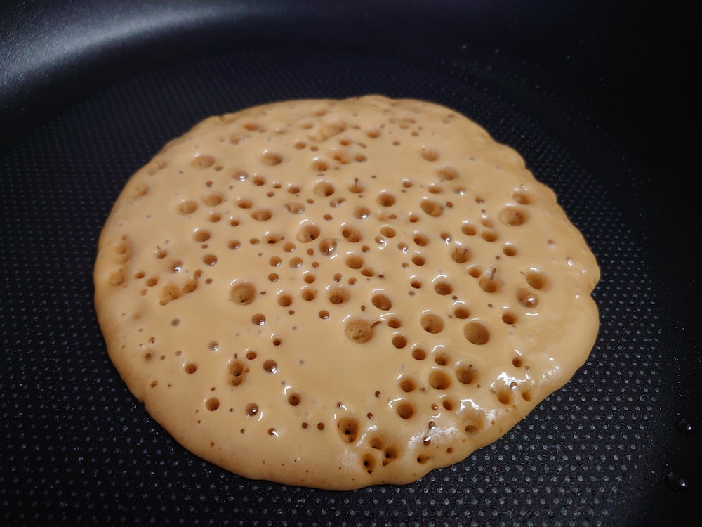 ④生地全体に小さい穴がポツポツ出てきたらひっくり返す。