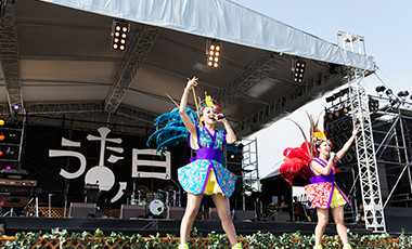 宮城姉妹やキッズダンサーらも再び登場、出番ではなかったはずのガレッジセール川田さんをはじめ、観客も一緒になって踊り出し、会場のボルテージは一気にヒートアップ!!「国道508号線」では、お客さんも一緒に手を叩き、お尻を叩き、ファミマCMでお馴染みの“結ダンス“を踊ってくれました。新曲「バルーン」では、観客が手に持つ赤や青の風船が一斉に揺れ出します。会場全体が一体になって盛り上がるのは、マルシャならではの醍醐味。