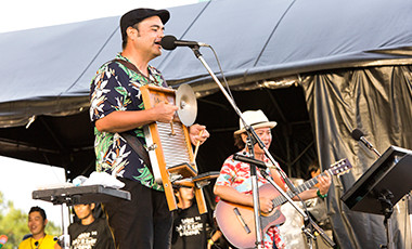 続く澤雪絵さんは着物姿で登場し、空にまで澄み渡る声で朗々と浪曲を歌い上げ、BEGINがブラジルで出会った12歳の歌姫・メリッサさんが堂々のパフォーマンスで「涙そうそう」を披露し会場を沸かせます。