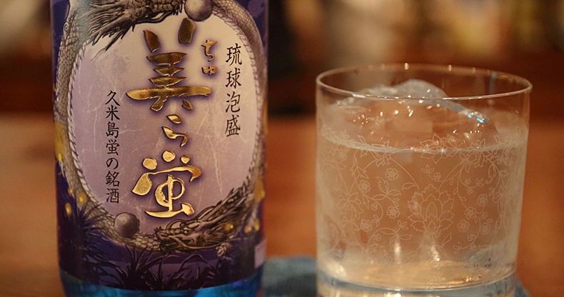 「最初からストレートはちょっと…」という方にお薦めしたいのは、ブルーボトルが涼しげな『美ら蛍(ちゅらぼたる)』の水割り。