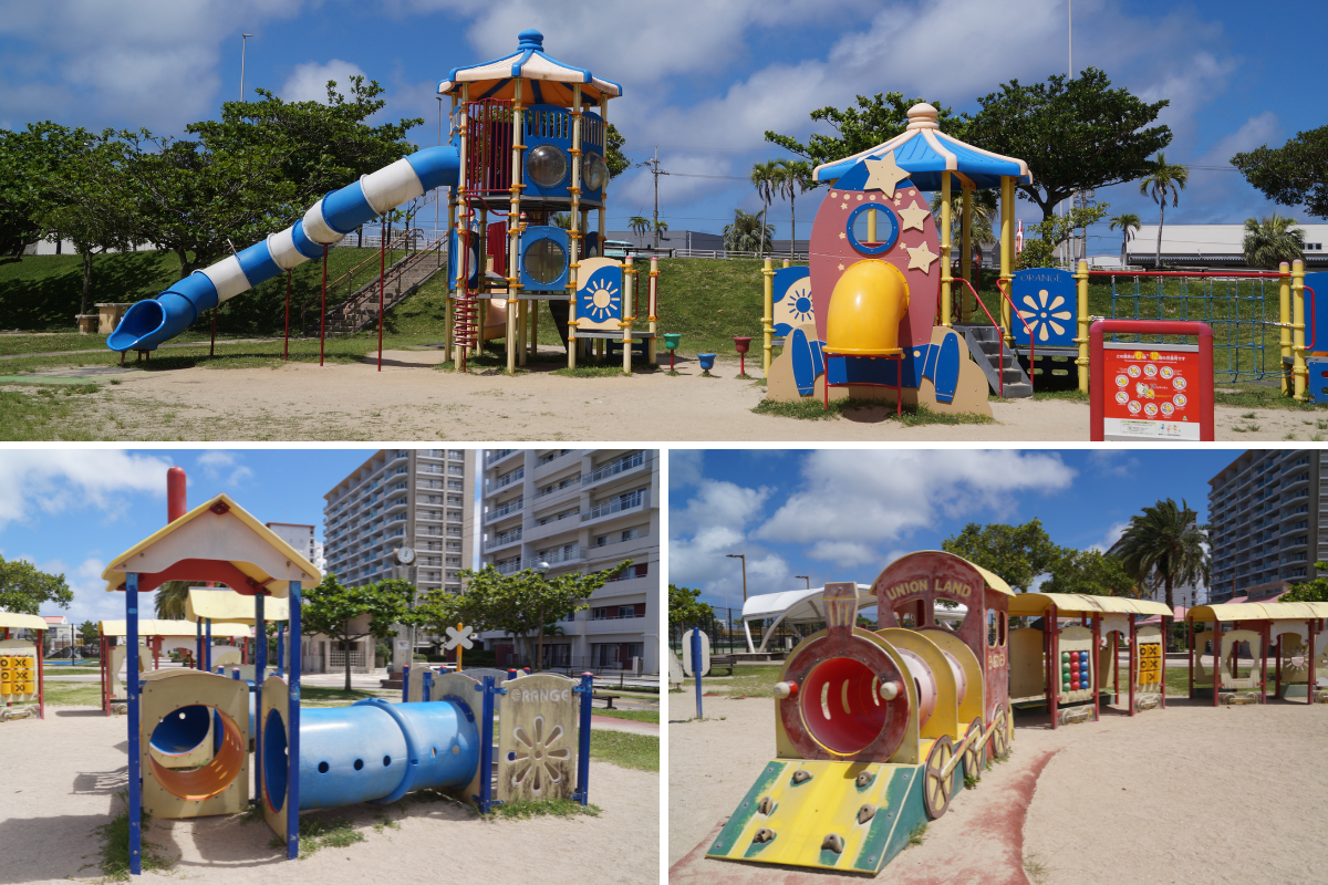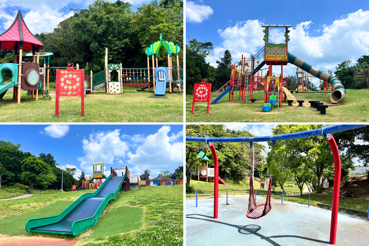 コザ運動公園内には、小さいお子さんが気軽に遊べる遊具が充実しています。