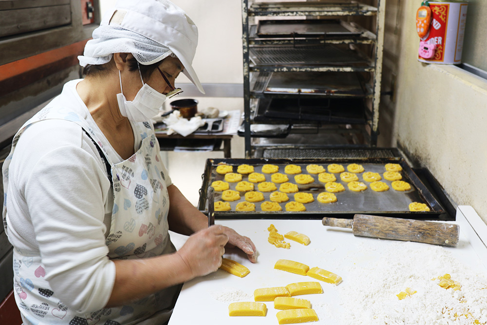 今回お邪魔したのは、その首里城のお膝元・首里赤平町に工場を構える「新垣カミ菓子店」です。