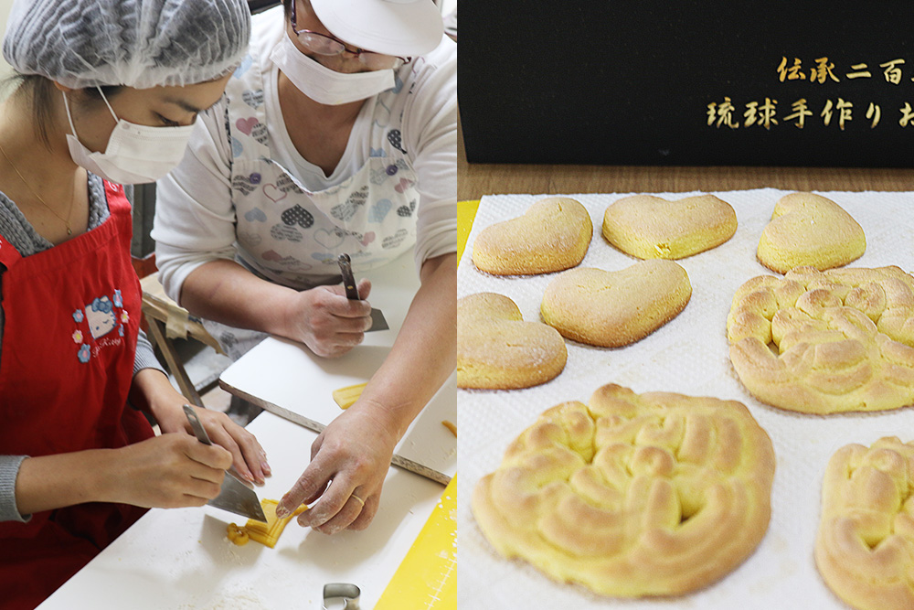 約500年前の沖縄が琉球王国という独立した国だった、というのは有名な話。国王の住む首里城内では、毎日の食事のほか、儀式や来賓のための豪華な宮廷料理や宮廷菓子が作られていました。宮廷菓子の特徴は、当時入手が困難だった卵や白糖やラードなどをふんだんに使っている点。その当時、城内で作られていたお菓子は160を超えると伝えられますが、今日まで残っているのはそのほんの一部です。