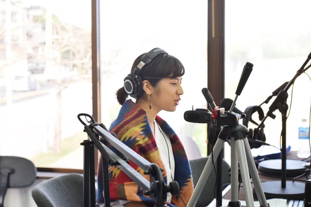 はじめて会う私の目をじっとみて、言葉の端々には「にかっ」と笑い、「わぁ」と驚きの表情を浮かべる黒島さん。そんな彼女の天真爛漫な姿を見に、FMぎのわんのリスナーが会場に遊びに来ることもしばしば。
