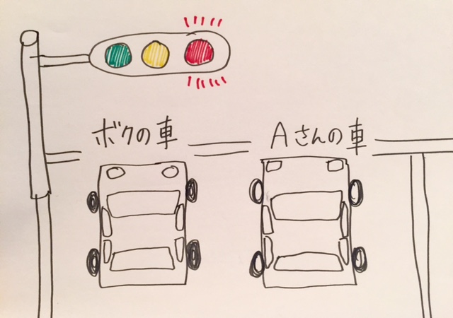 (Aさんの隣に車がなければ、わざわざ後ろに並んでる感がでて、なおさら気まずい)
