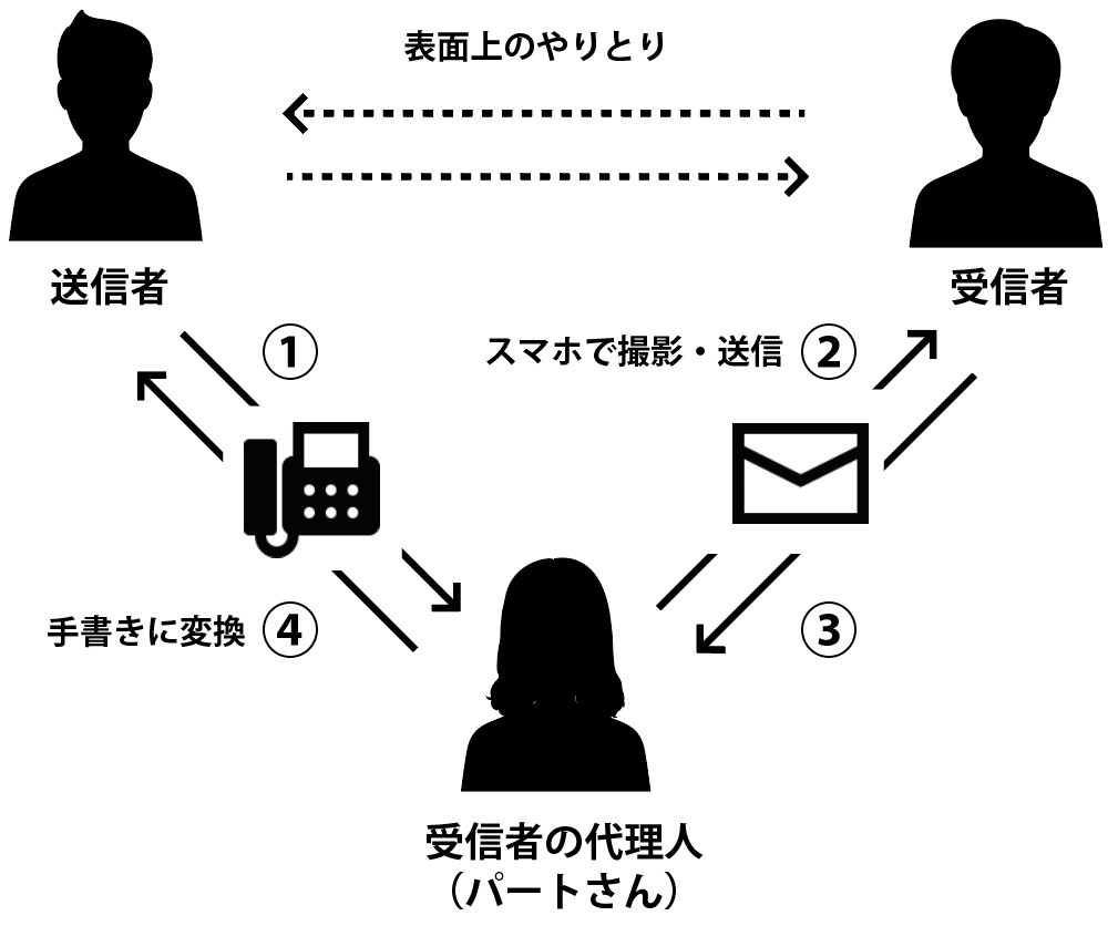 なんなら、さらにその手書きのFAXを、さらに伝書鳩で届けるとか。