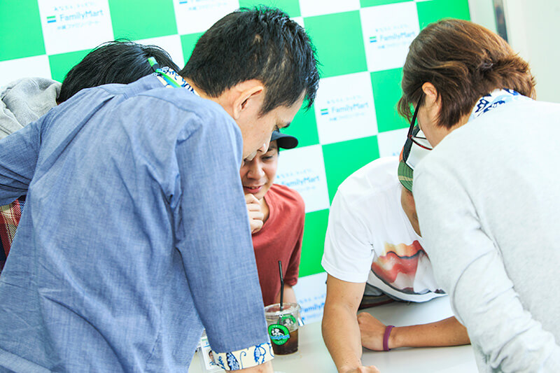 昨年、「週刊ファミマガ」でメンバーにインタビューしたのがきっかけです。彼ら、いい人なんですよ。本当はすごい人たちなのに、気さくで、やたら「ファミマ好きっす」をアピールしてくれて。その罠にはまっちゃいましたね(笑)。僕はこれまでも、出会いを大切にして企画を行ってきましたが、その後、じわりじわり彼らの魔法が効いてきて、今の沖縄ファミリーマートが目指す方向性と合致するなと思って、思い切って30周年記念の楽曲をお願いしました。昨年の11月頃だったと思います。