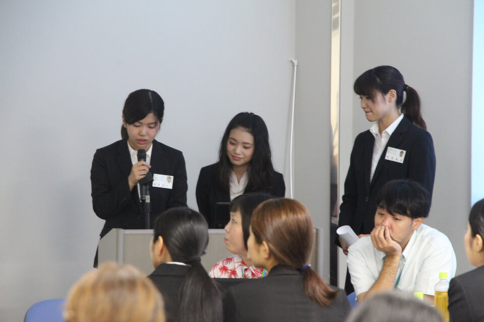 学Pを知らない人に存在を知ってもらうために、親近感のあるレンジャーを用いて元気付けるストーリーでの見せ方を提案。もはや琉球大学プレゼンの風物詩「全員で演劇風に再現」のお時間もありました(笑)