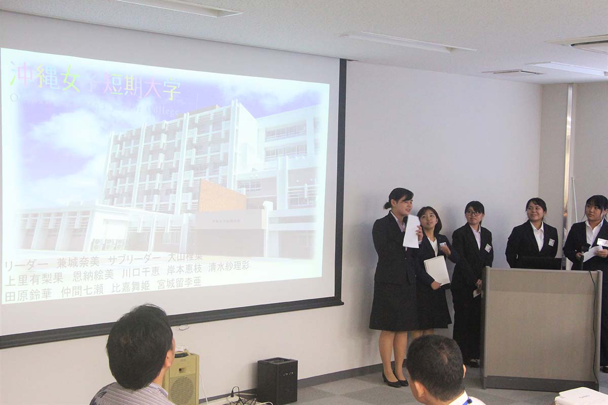 お揃いの腕章を巻くなどチームワークの良さを見せつつプレゼン開始!発表しているメンバー以外も外野から合いの手を入れたりするなど、全体で盛り上げていました。甘さとシークヮーサーの疲労回復を期待し仕事への原動力を生みたいという、沖縄元気生活応援団に沿ったプレゼンでした。