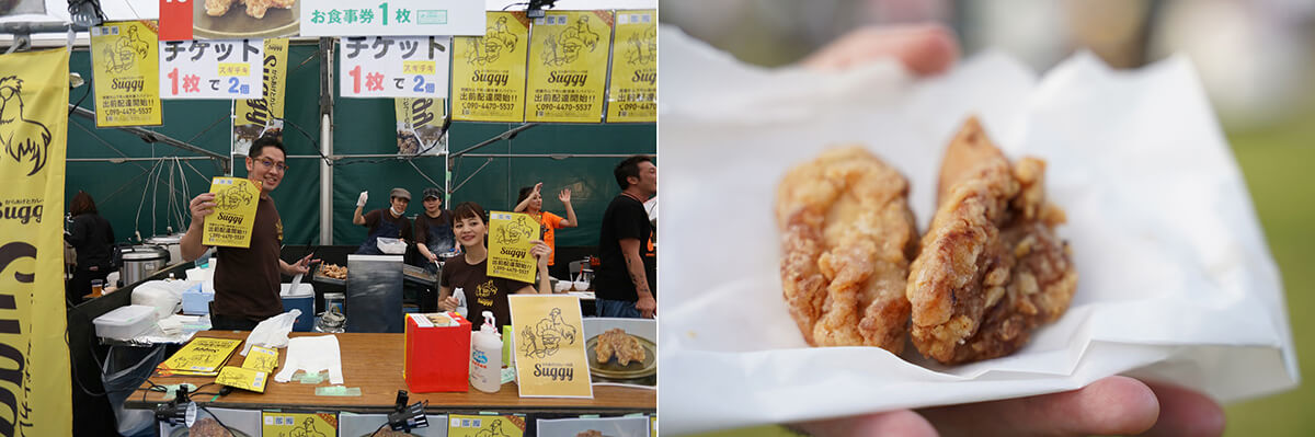 それぞれの飲食店が特色あふれる自慢の看板メニューを引っさげ大集結。会場に入った瞬間に美味しそうな匂いが立ち込め、そそられっぱなしで、もう大変です。