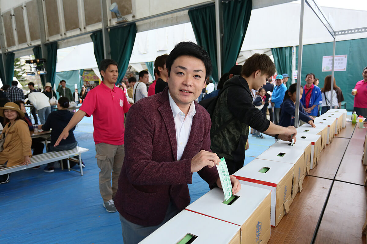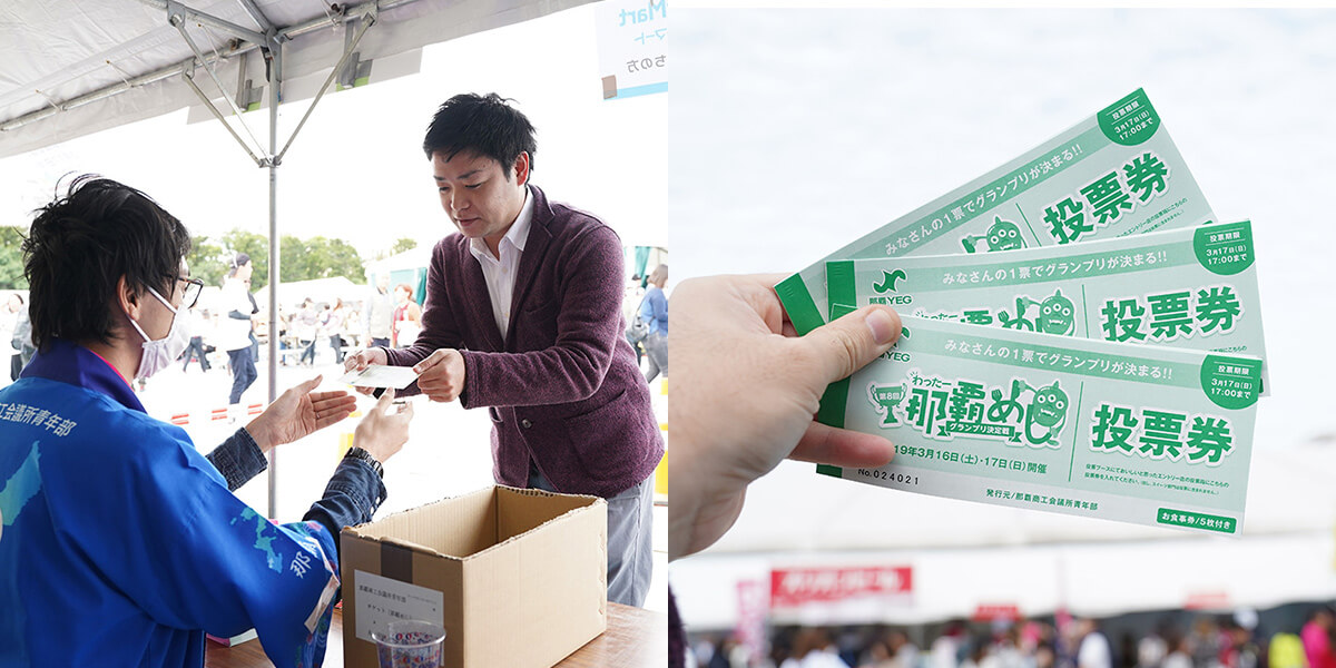 来場者は、5枚つづりになった投票券付き飲食チケットを購入して、1~3枚をそれぞれ料理と引き換えます。最後に最も美味しかった店舗に投票してもらいグランプリが決定するのです。
