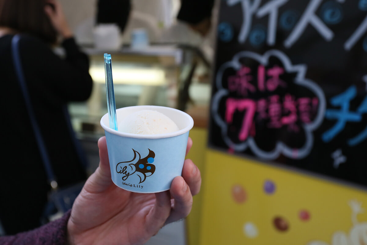 わたし、なんだか…結果が楽しみ過ぎて甘いモノが食べたくなってきました。実は…飲食チケットが1枚残っていた私。ぐしけんファームのアイスは、チケット1枚で交換ができるんです!同じことを考えていた人も多いようで。甘味を食べよう!