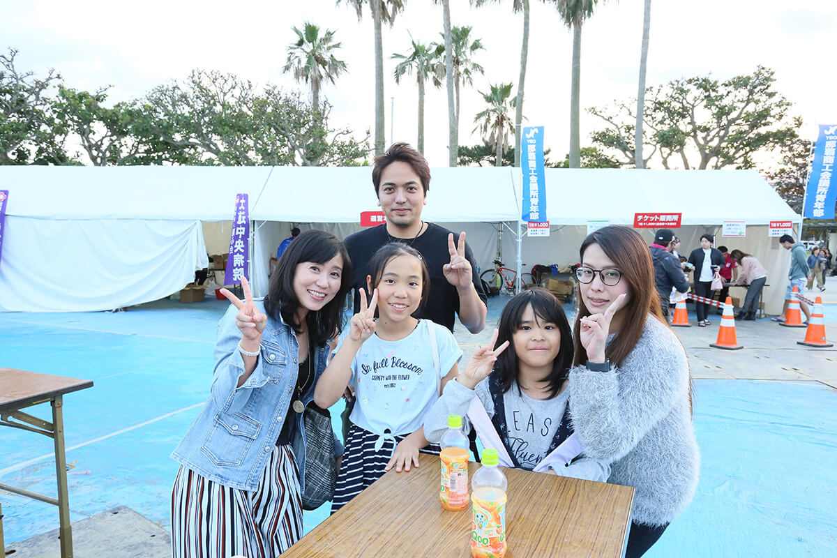 那覇めしは家族みんなで楽しめる!稲盛さんファミリーと徳森さんファミリーも昼間からの来場で大満足。