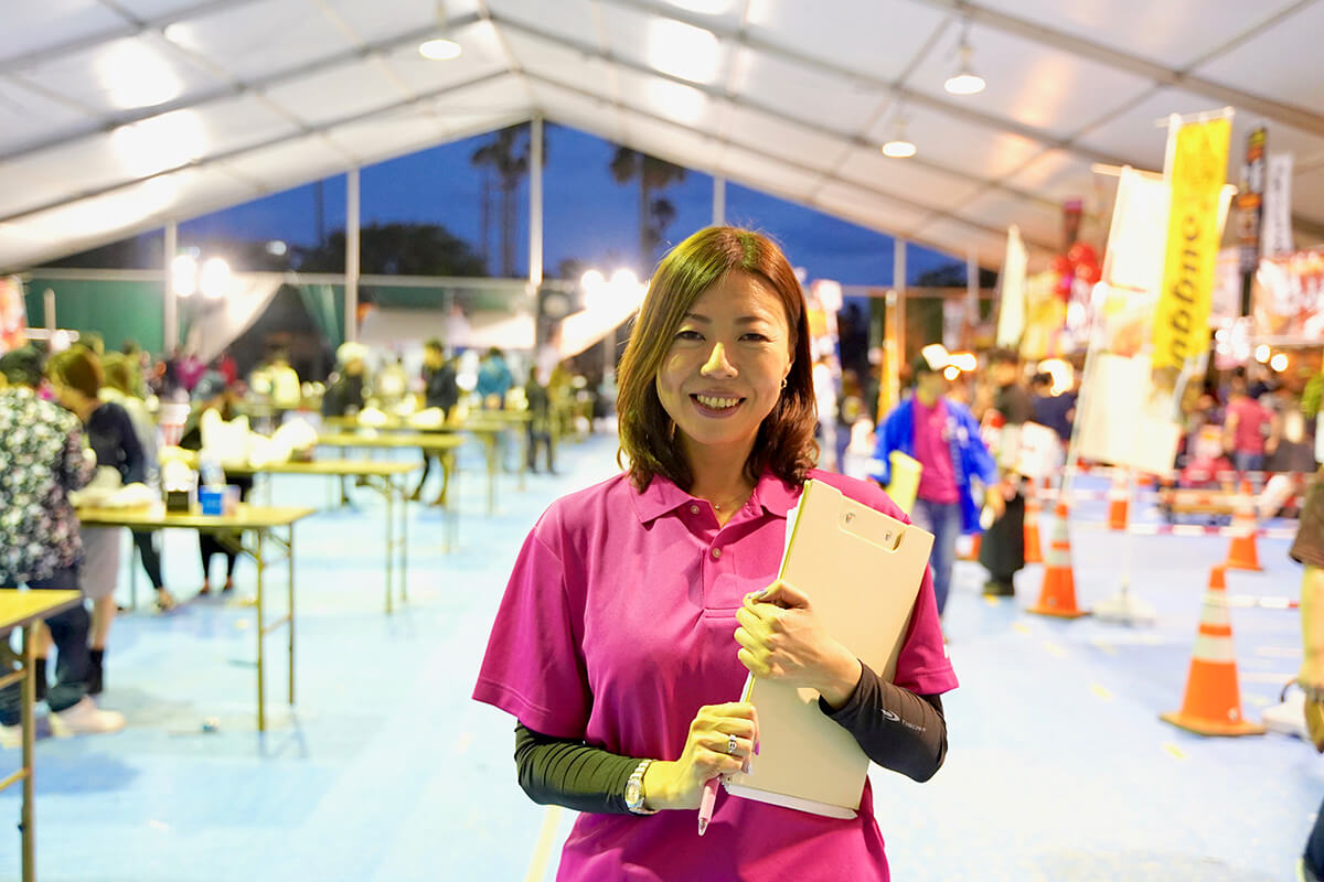 「2日間、ステージの司会を担当していました。ちょうどステージの上から出店ブースの行列が見えるんですよね。そこでこっそり『今年はどこどこのお店がグランプリ候補だな…』とか思ったりして。出店者と実行委員会との連携や事前準備、当日の運営など、やることだらけで大変でしたが、喜んでもらっている様子を見ると、毎回終わったあとは達成感で一杯になります。去年より多くのみなさんに来場頂いて、那覇の素晴らしいお店を知ってもらえて良かったです」