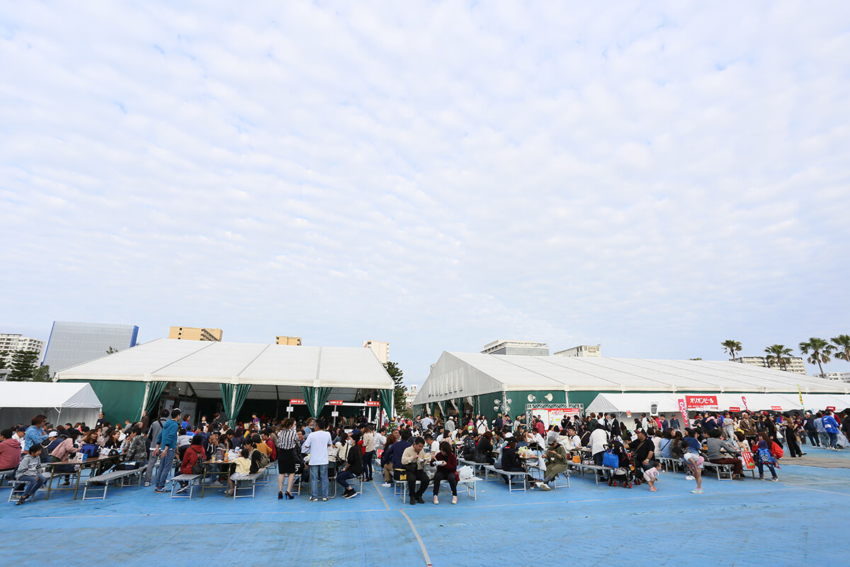 見て下さいこの例年以上の盛り上がり!屋外にはオリオンビールブースもあり、お祭りムードが高まります。