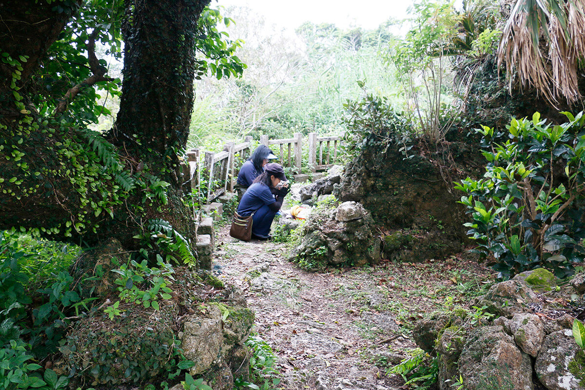 そして、城内の拝所ではお祈りをされている2人の女性と出会いました。