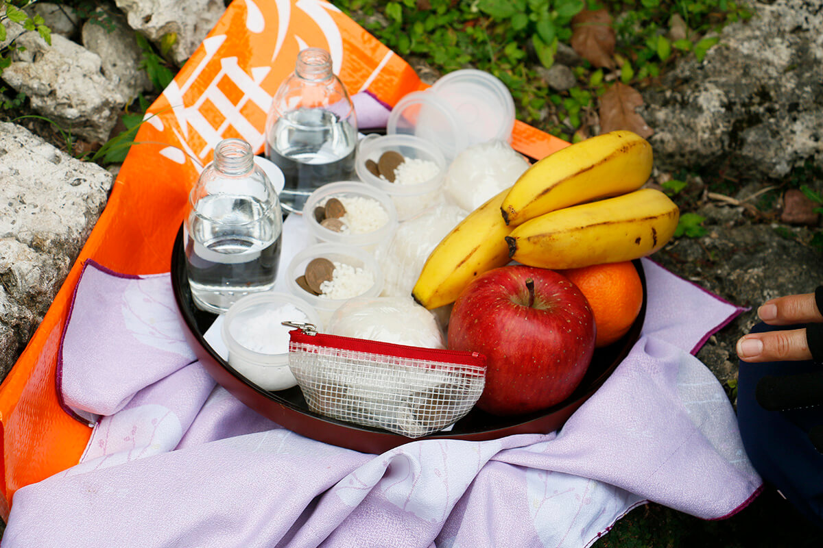 お米とお金は、豊年満作を。果物のバナナは父親、男。ミカンやリンゴは母親、女。塩やお酒は清めとして。そして独特なのはウチャヌクと呼ばれる3段重ねにしたお餅。