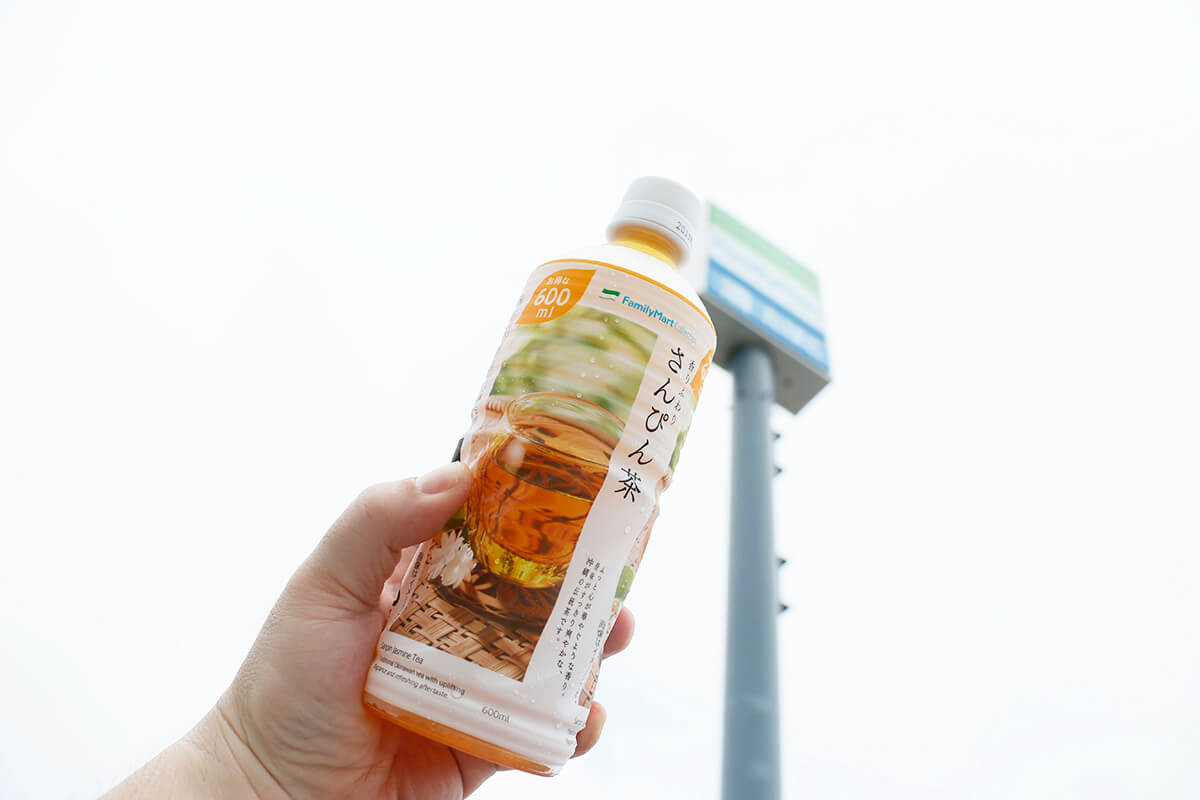 那覇市街地からずいぶん移動して来ました。沖縄ファミリーマートではウチナーンチュに親しまれているさんぴん茶がもちろん常備。グスクが盛んにつくられてきた琉球王国の頃から愛されていたというこのお茶でしっかり水分補給しましょう。というわけで「香りふわり さんぴん茶」を購入。お得な600ml入りで沖縄伝統の味をお得に補給します。