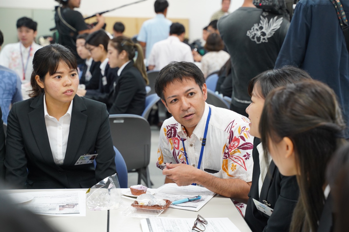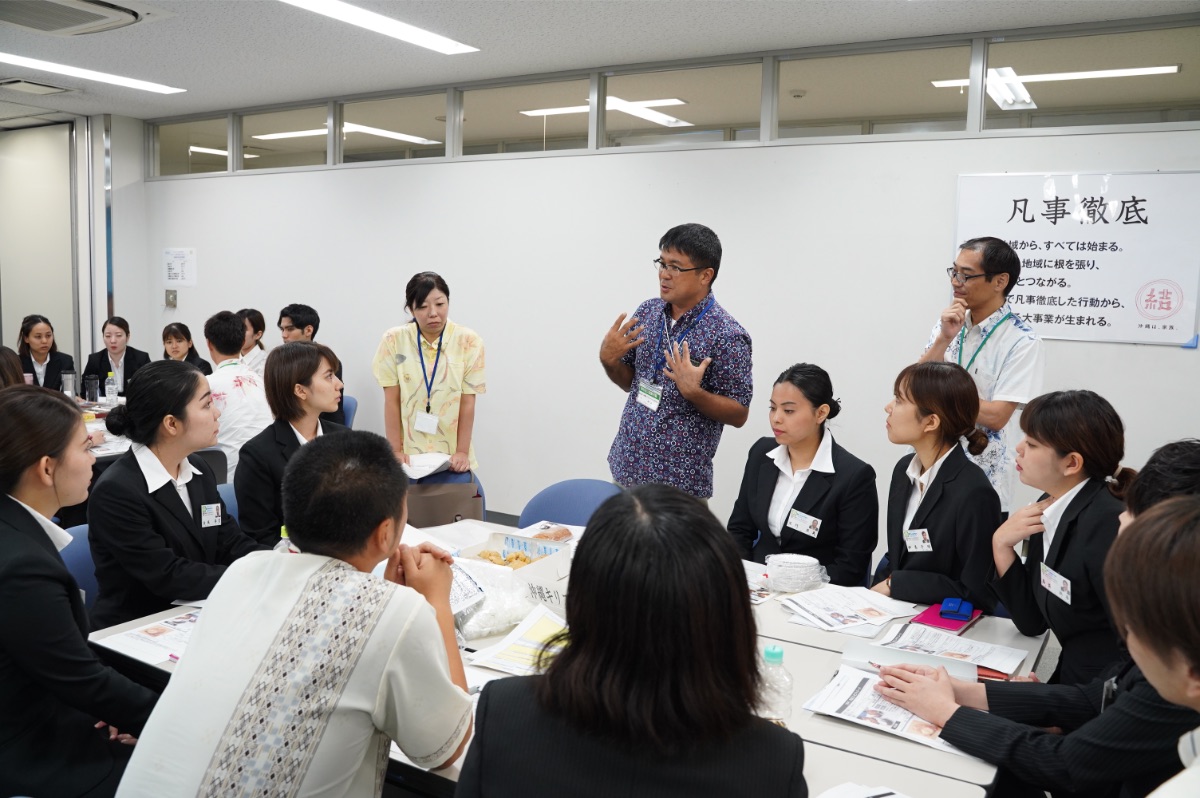 「過去の参加者からは『学Pほど、いろんなことを勉強して体験できたものはなかった』という嬉しい声も頂いています。沖縄ファミリーマートはこれまでにも、コーヒーのマシン提供やフライドチキン販売を他の大手に先駆けてやってきました。歴史に残る商品、みなさんの財産になる商品を作って下さい」(沖縄ファミリーマート・杉田取締役)