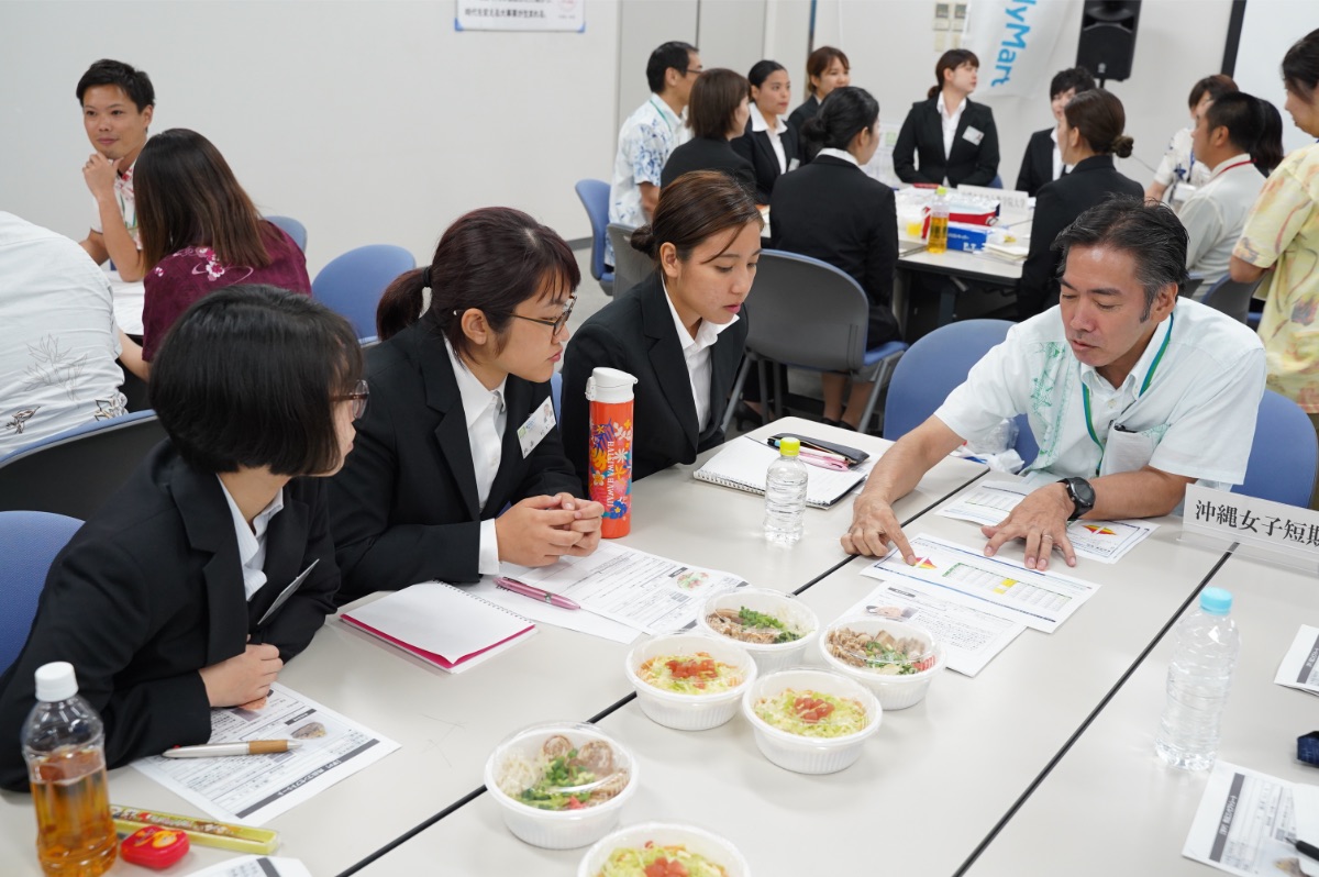 今年は「琉球大学」「沖縄大学」「沖縄国際大学」「名桜大学」「沖縄キリスト教学院大学」「沖縄女子短期大学」「沖縄県立農業大学校」の7大学50名が参加。