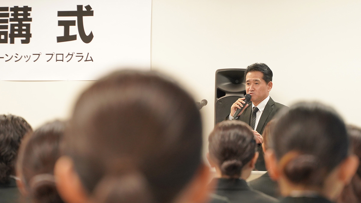 開講式の始まりは、沖縄ファミリーマート平良良勝常務の労いの挨拶から。