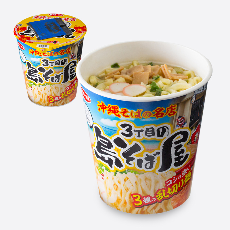 2020.02.18 沖縄そばの名店 3丁目の島そば屋(沖縄そば) ファミマ新商品 シェア Tweet 【ファミリーマート限定】沖縄そばの名店「3丁目の島そば屋」監修のカップ麺。鰹だしに 生姜の風味を利かせた旨みの強いスープと太さの違う3種の乱切り麺を使用。 価格226 円(税込) 発売日2020年2月18日 一部店舗にて取扱いのない場合がございます。 掲載の新商品は今後、パッケージ・規格・価格の変更及び販売終了となる場合がございます。