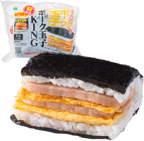 8月 ポーク玉子おむすびKINGが発売!ポーク2枚、卵焼き2枚という、まさに王の名にふさわしいボリューム満点のおむすび。