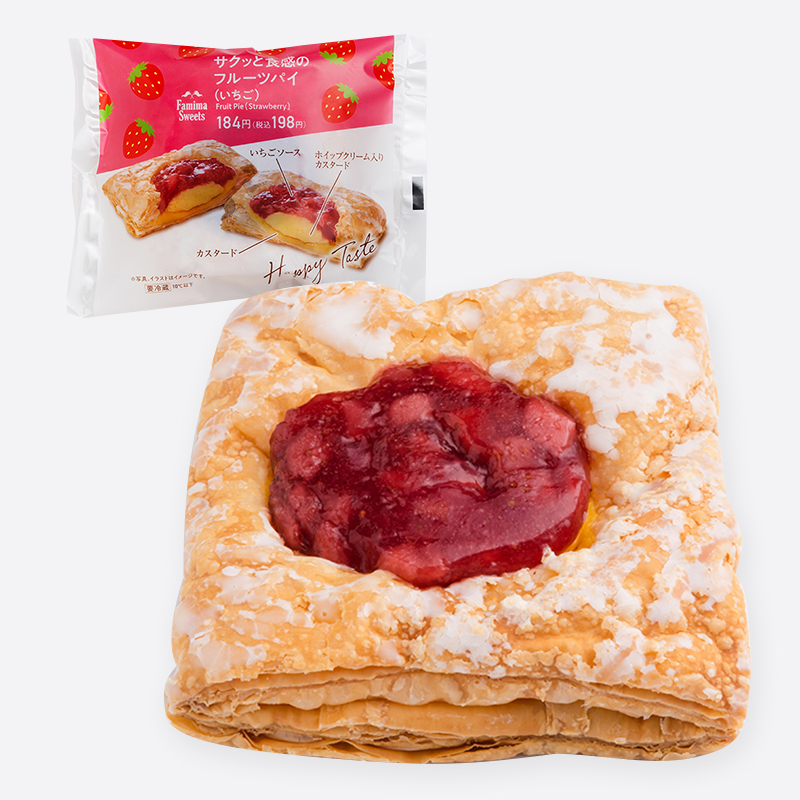 2020.11.17 サクッと食感のフルーツパイ(いちご) ファミマ新商品 シェア Tweet バターの香り豊かなサクッと食感のパイ生地に、カスタードクリームと苺の果肉入りソースをトッピングしました。 価格198円(税込) 発売日2020年11月17日 一部店舗にて取扱いのない場合がございます。 掲載の新商品は今後、パッケージ・規格・価格の変更及び販売終了となる場合がございます。