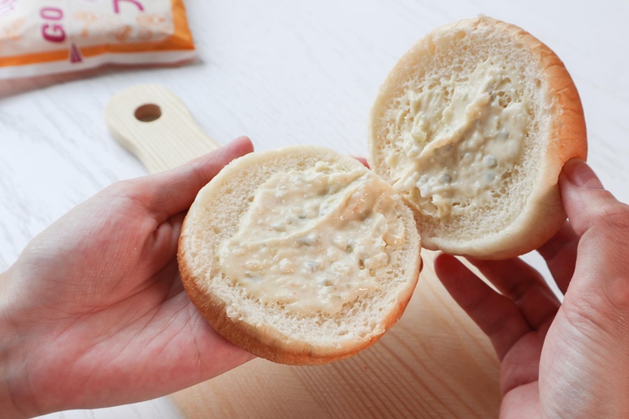 さてこのバンズ、一見ごく普通のふわふわバンズですが、実はこのバンズの中にはタルタルソースが挟まれているのだとか。
