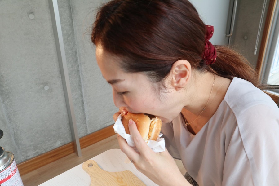 キャンプが好きの男性スタッフ・知念さん。たしかにわたしはキャンプに行ったことがないのでわかりませんが、キャンプ好きがキャンプで食べてそうな雰囲気はとてもします。知念さんはいつもキャンプをした翌日の朝、パンに前日の焼肉の残りを詰めて食べるのだそうですが、次からはファミチキバンズにするそうです。