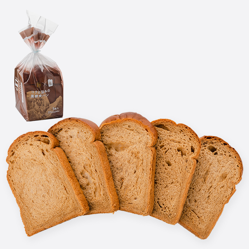 生地に沖縄県産黒糖を配合、黒糖の上品な甘さとマーガリンの塩味が味わえる食パンです。