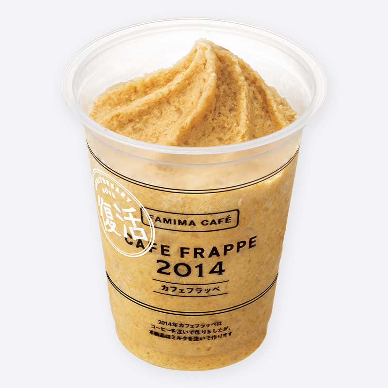 歴代カフェフラッペで最も売れた、「2014年発売のカフェフラッペ」を再現した復活商品。ミルクを注いで作る風味豊かなフラッペシリーズの王道「カフェフラッペ」。風味豊かなコーヒーとミルクの旨みを再現しました。