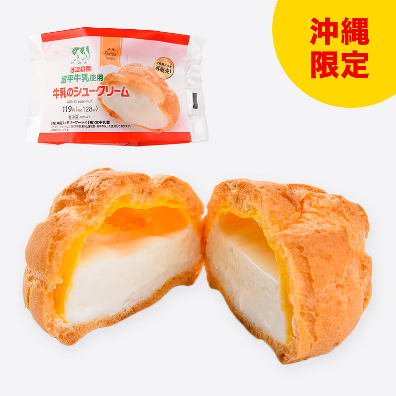 2021.04.27 宮平乳業コラボ 牛乳のシュークリーム ファミマ新商品 シェア Tweet 昨年発売し大好評だった宮平乳業とのコラボ企画商品をリニューアル。牛乳使用量がアップし、さらにおいしくなりました。 価格128円(税込) 発売日2021年4月27日 一部店舗にて取扱いのない場合がございます。 掲載の新商品は今後、パッケージ・規格・価格の変更及び販売終了となる場合がございます。